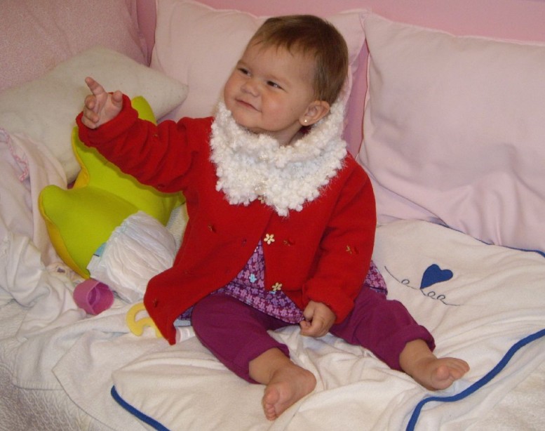This cute and cozy neckwarmer looks just gorgeous in little Paula’s neck!
