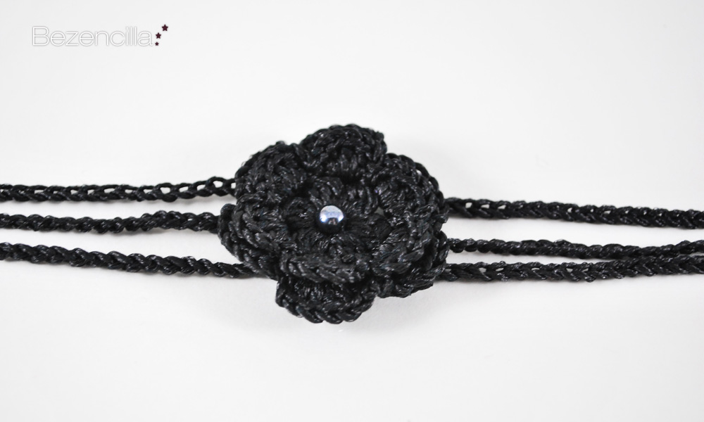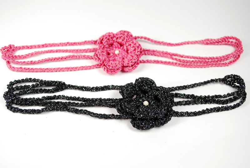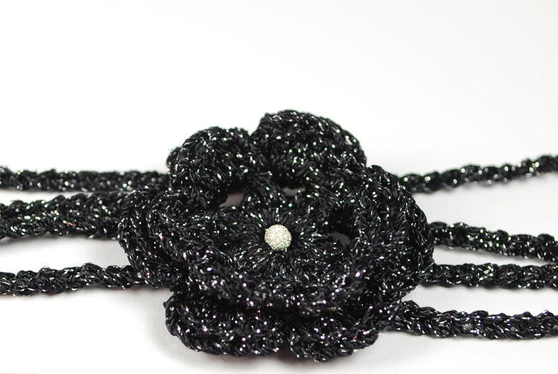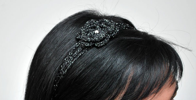 This black and silver headband has been made using the luxury Gatsby yarn and a 3 mm. hook.