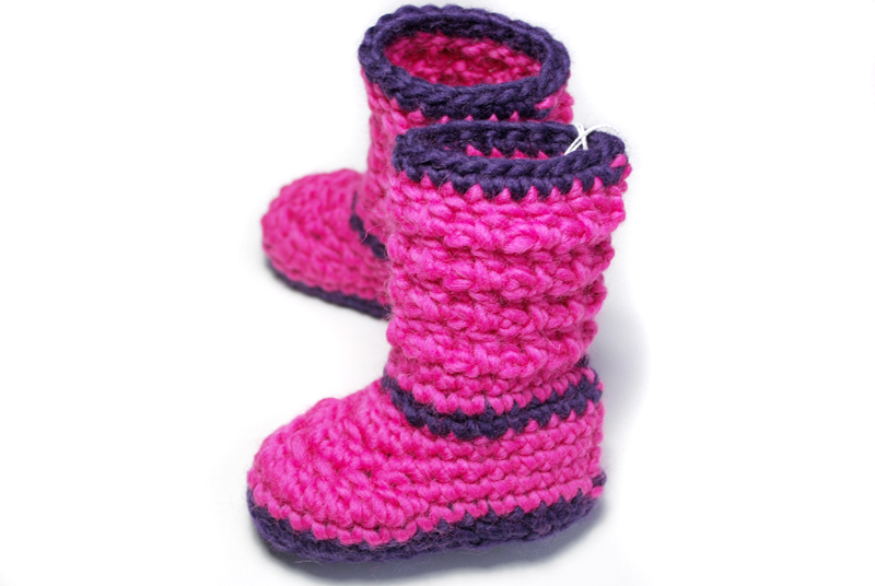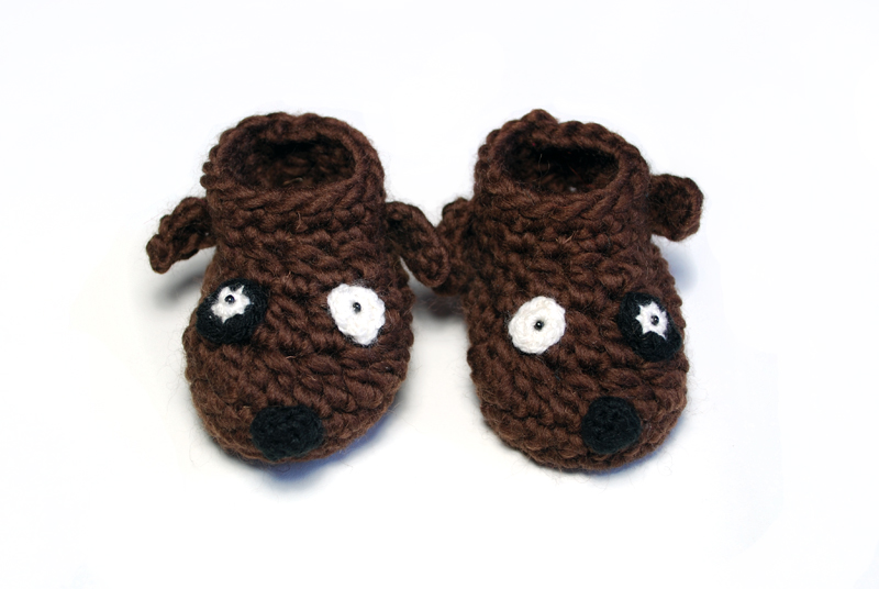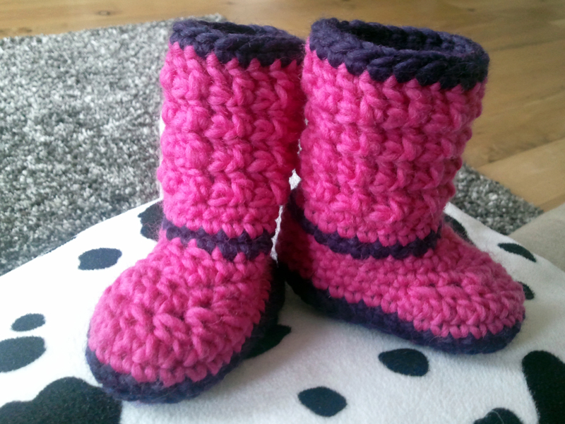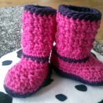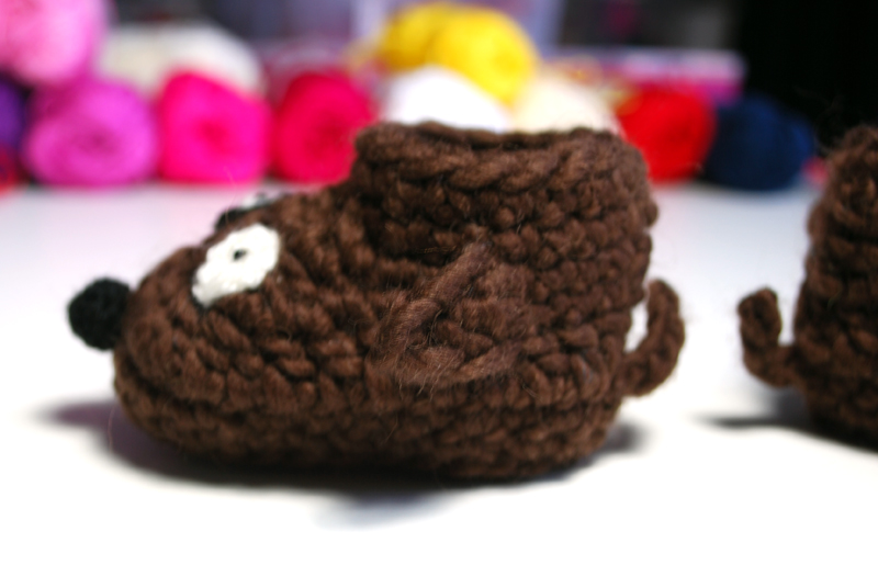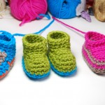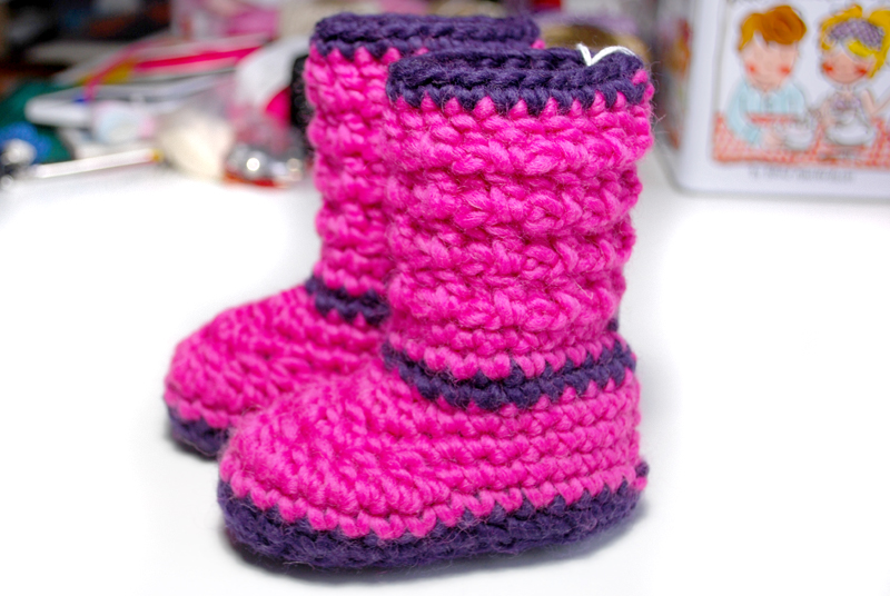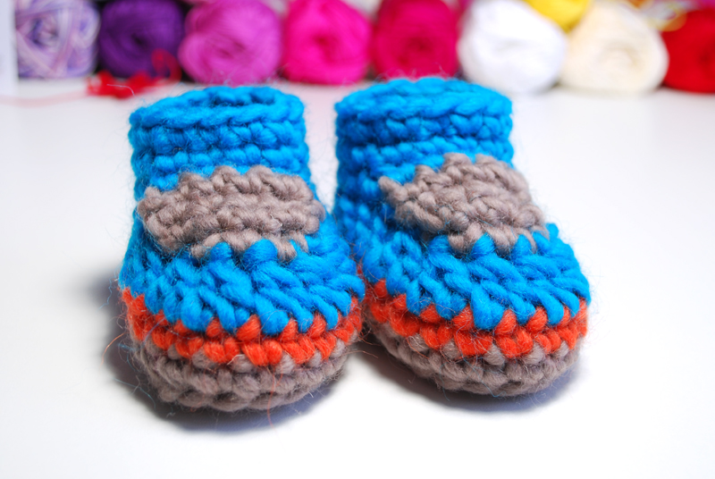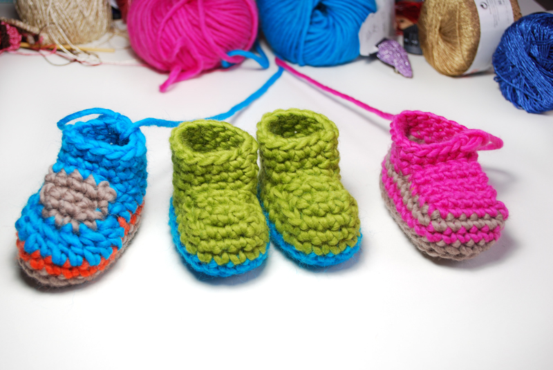 Let me introduce you to my new creations: the dog baby booties, the pink and purple medium length booties, the green and blue sweet booties and the tricoloured inspired by the basket shoes.