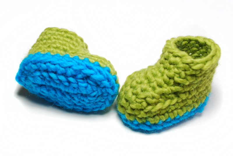 They are crocheted with a 100% wool yarn (trico fieltro), high quality, soft and full of colour. This wool can be used for felting projects, but these ones are not meant to become felt, for that reason I have used a smaller hook than the normal, a 6 – 6.5 mm. That way the bootie will be more consistent and tighter.
