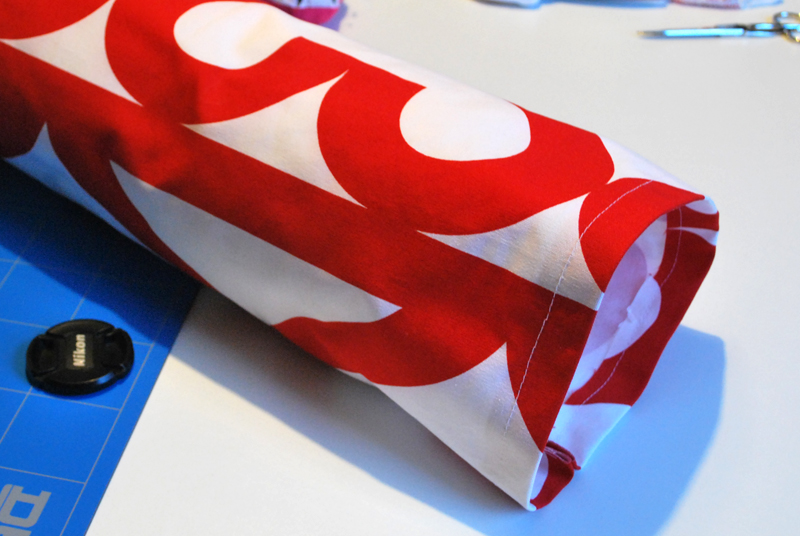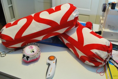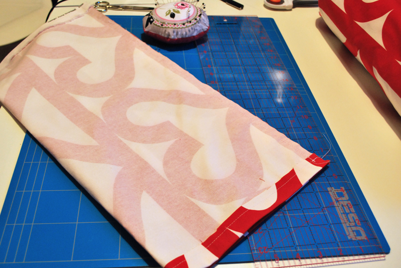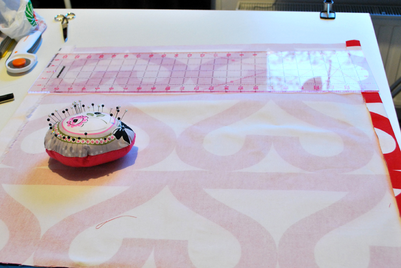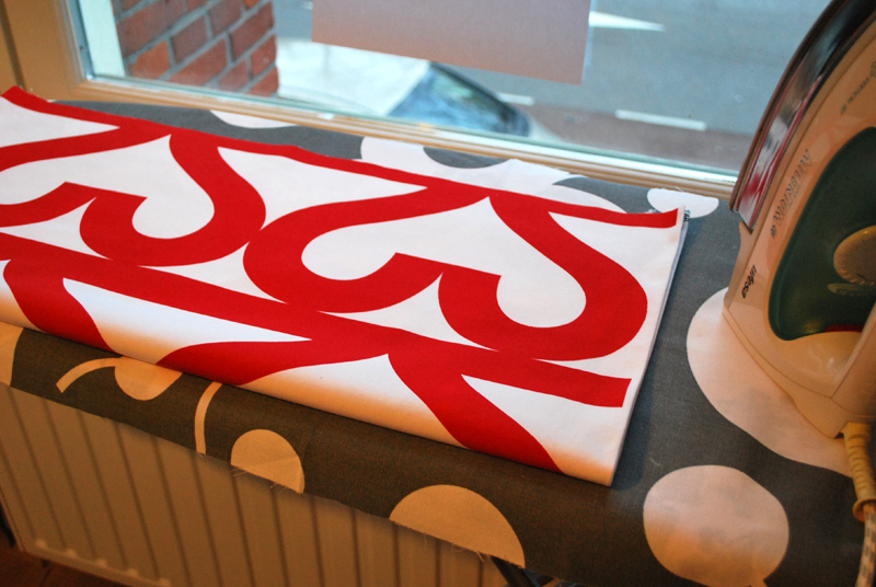 I’ve ready all my tools and my hearts fabric from Ikea, next I’m going to show you the sewing process to make these lovely pillows: