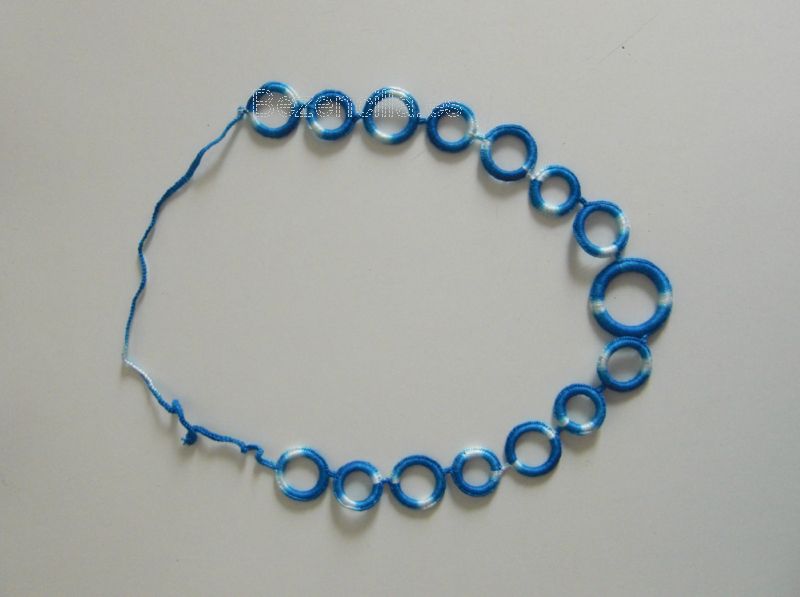 Few months ago I crocheted this happy blue and white necklace. The inspiration came to me from a collar I did have on a summertime. I did like it. This new one is medium large, very appropiate for a cleaveage in a t-shirt.