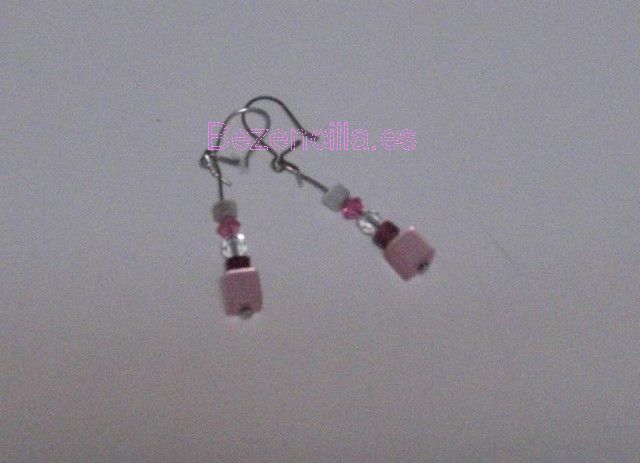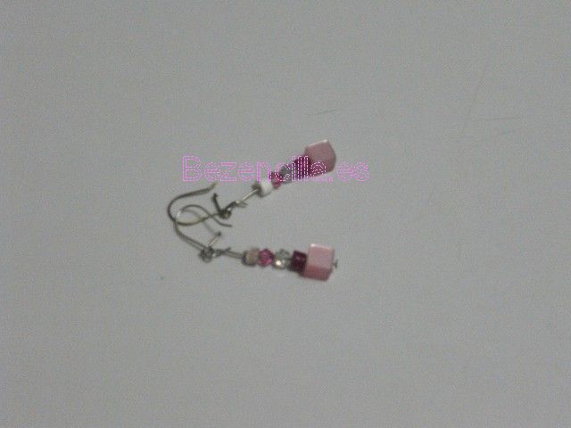 Hace algún tiempo hice estos pendientes de cuentas de cristal en varios tonos rosas, combinando diferentes formas y plata.