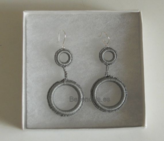 These second ones are called Ana, I made them for a friend. They have two crocheted rigid rings, medium but long size, they look very bright in the grey color.