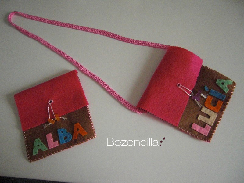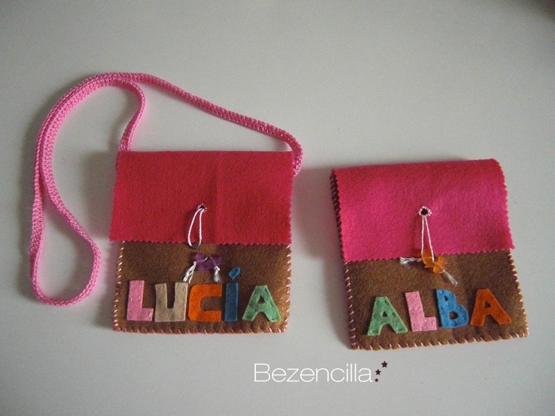 Aquí están los bolsitos en fieltro personalizados con los nombres de mis princesitas: