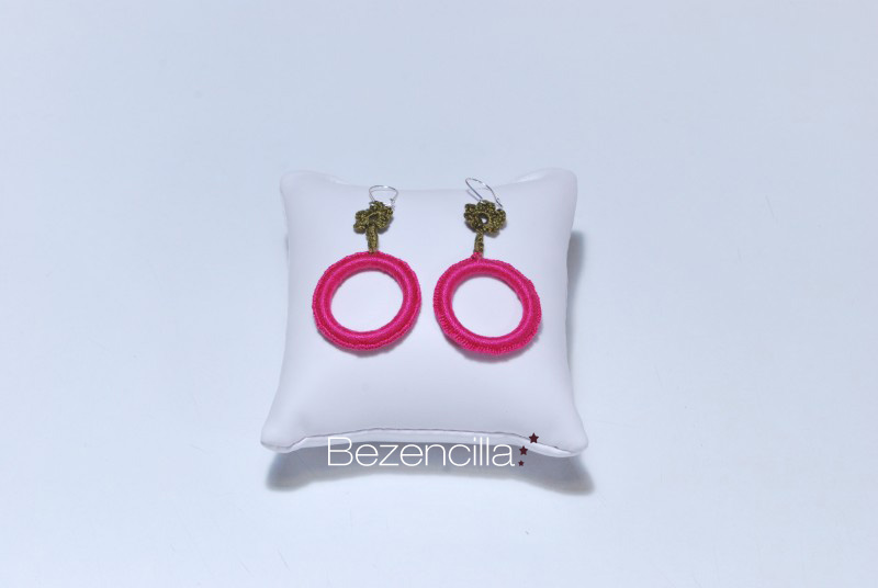 Aquí podéis ver uno de los últimos trabajos que he hecho que para mí son muy Zen por la mezcla de color, el rosa y el verde son mis colores. La parte superior son unas flores en color verde botella y la parte de la anilla es un rosa fucsia, muy vivo y alegre.