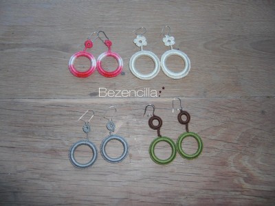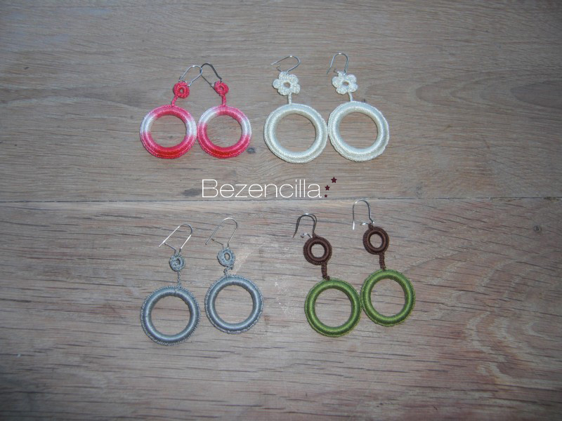 Y finalmente aquí podéis ver un par de modelos nuevos, los blancos con flor y los verdes y marrones hechos con anillas.