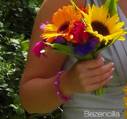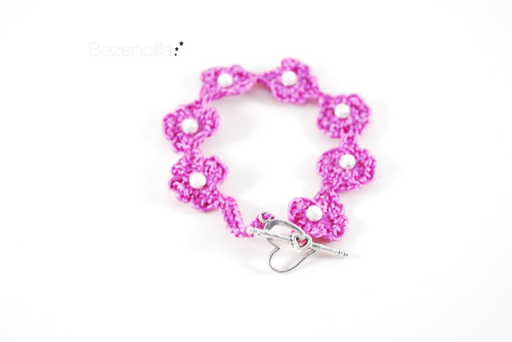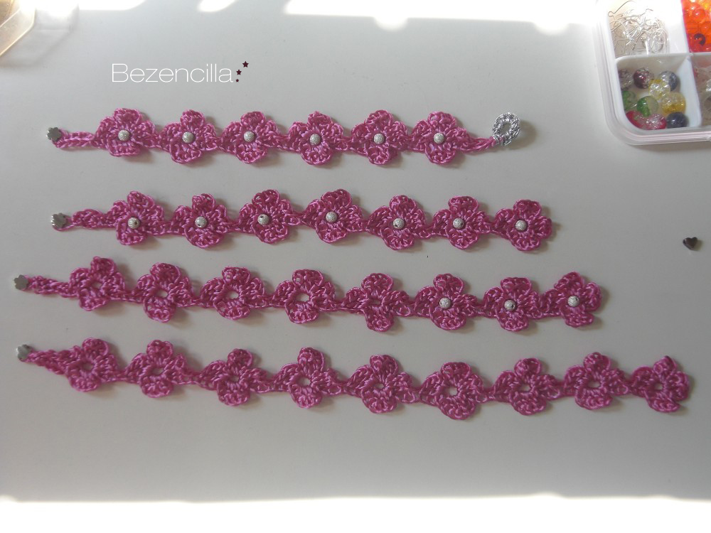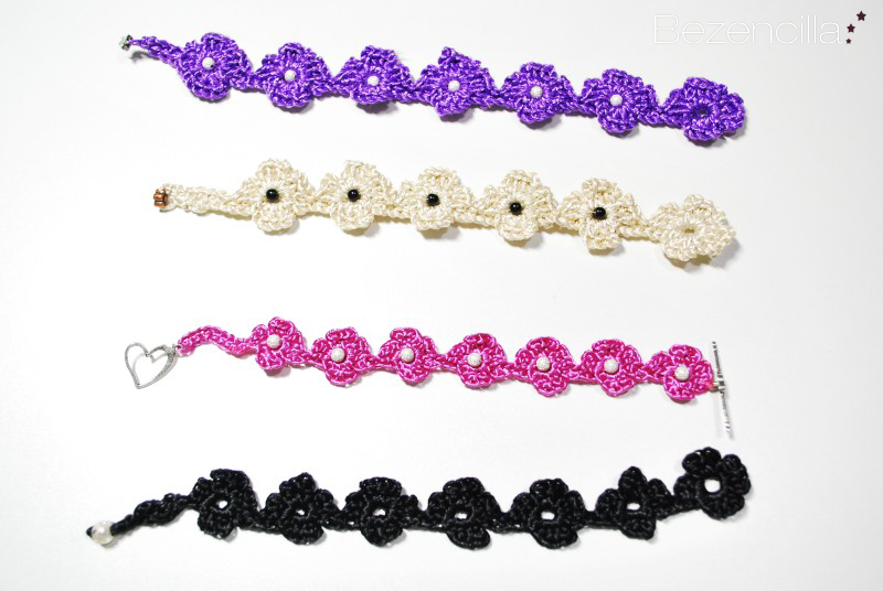 El modelo de la pulsera de flores queda muy bonito también en otros colores e hilos.