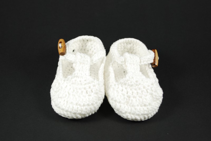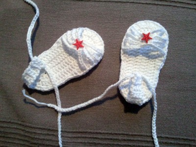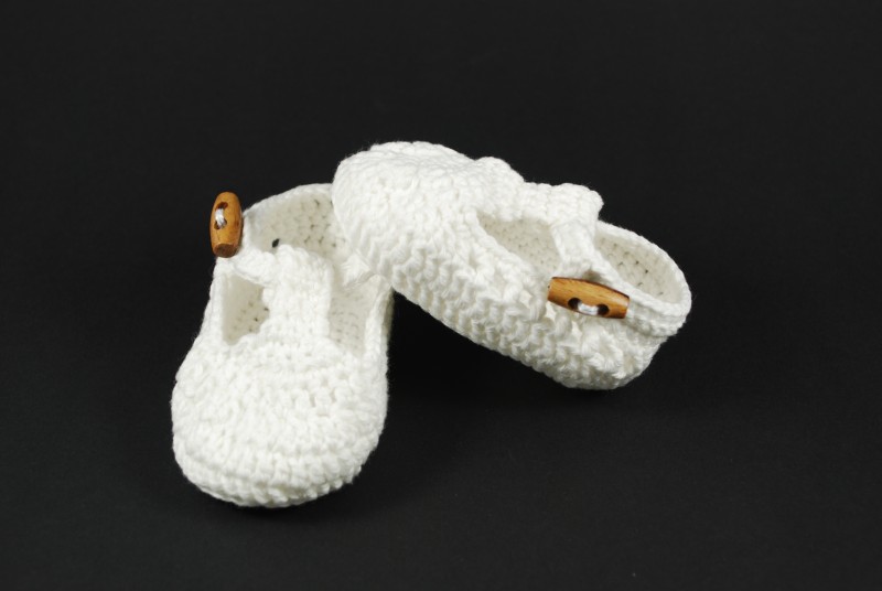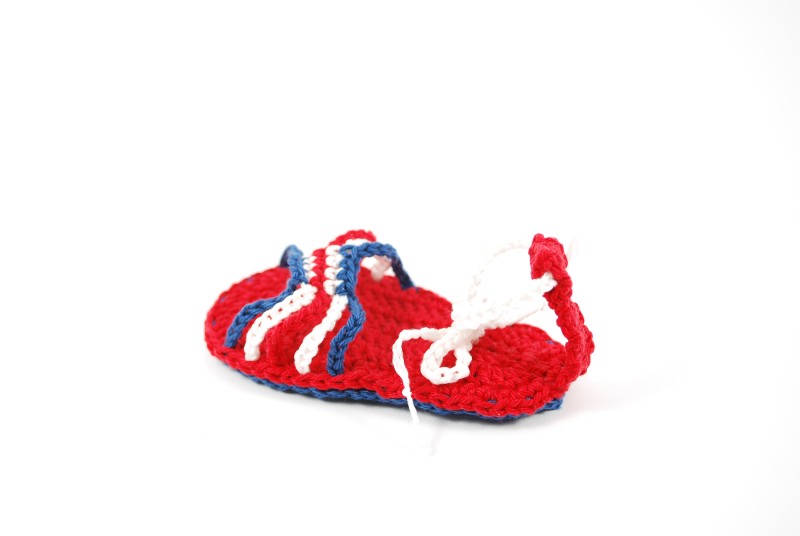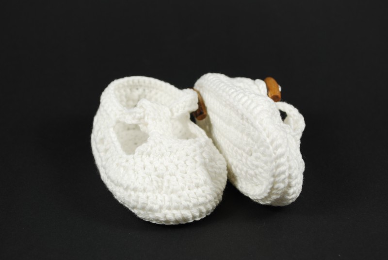 Estas sandalias blancas con estrella roja están tejidas con algodón ecológico certificado, utilizando una aguja de bambó de 3 mm. Me gusta mucho este algodón, es muy suave.