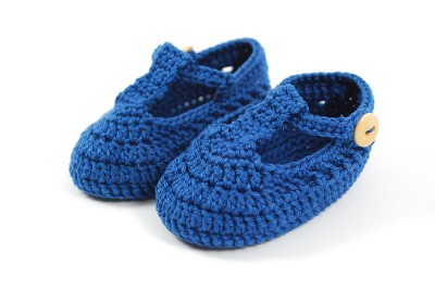 Sandalias azul marino con botones de madera, para bebés de 0 a 3 meses.