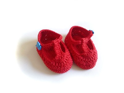 Este par de sandalias rojas con botones azules de elefante ya tienen dueno, ¡el pequeño Gustavo!