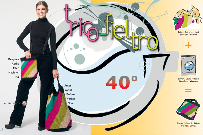 Trico-fieltro es una de mis lanas favoritas para proyectos de invierno, sobre todo para zapatillas y botitas, pero también puede utilizarse para tejer bolsos, gorros, guantes y cualquier proyecto calentito y lleno de color que puedas imaginar.