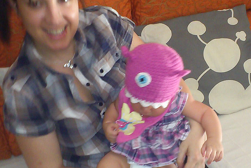 I love the pink hat it remembers me the movie monsters&co, you remember mike wasosky?? It’s Sully’s friend. On pink, looks like his girlfriend!!! Congratulations it’s adorable