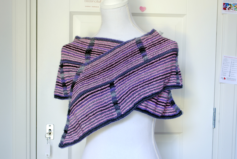 Por fin en agosto conseguí terminar mi chal Clockwork, el tejiendo juntos que empezamos en junio en nuestro grupo Stitch ‘n Bitch.