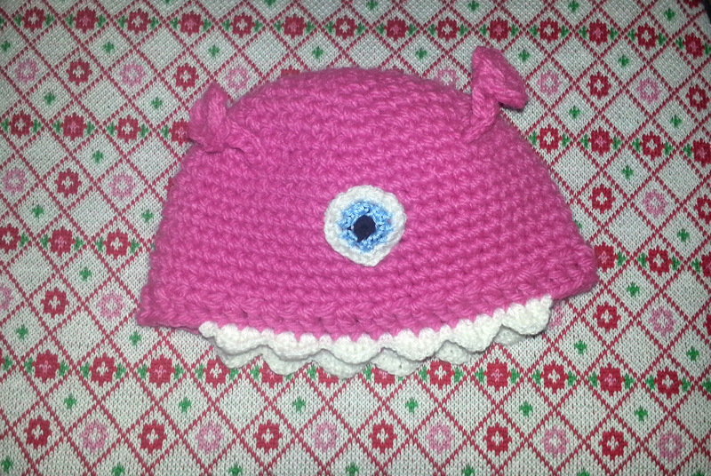 En ganchillo he hecho un par de gorritos alien para bebés, uno rosa y uno verde. El rosa solo tiene un ojo, me parece una monada!